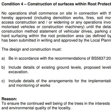 Support with fulfilling tree-related planning conditions, including monitoring, reporting, and liaison with local authorities.